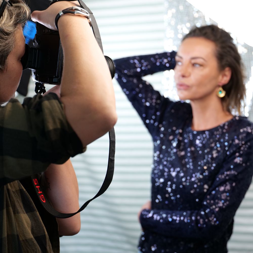 Derrière ces images que vous découvrez depuis peu, il y a une petite équipe que j’aime profondément. Quel bonheur de la retrouver ! Pauline pour les photos, Masha à la vidéo, Floriane, notre magicienne au maquillage… Et puis Anne-Laure, Coco, Cécile et Émilie, toujours là, avec le sourire. Et moi, pendant ce temps, je fais ce que je fais à chaque shooting :