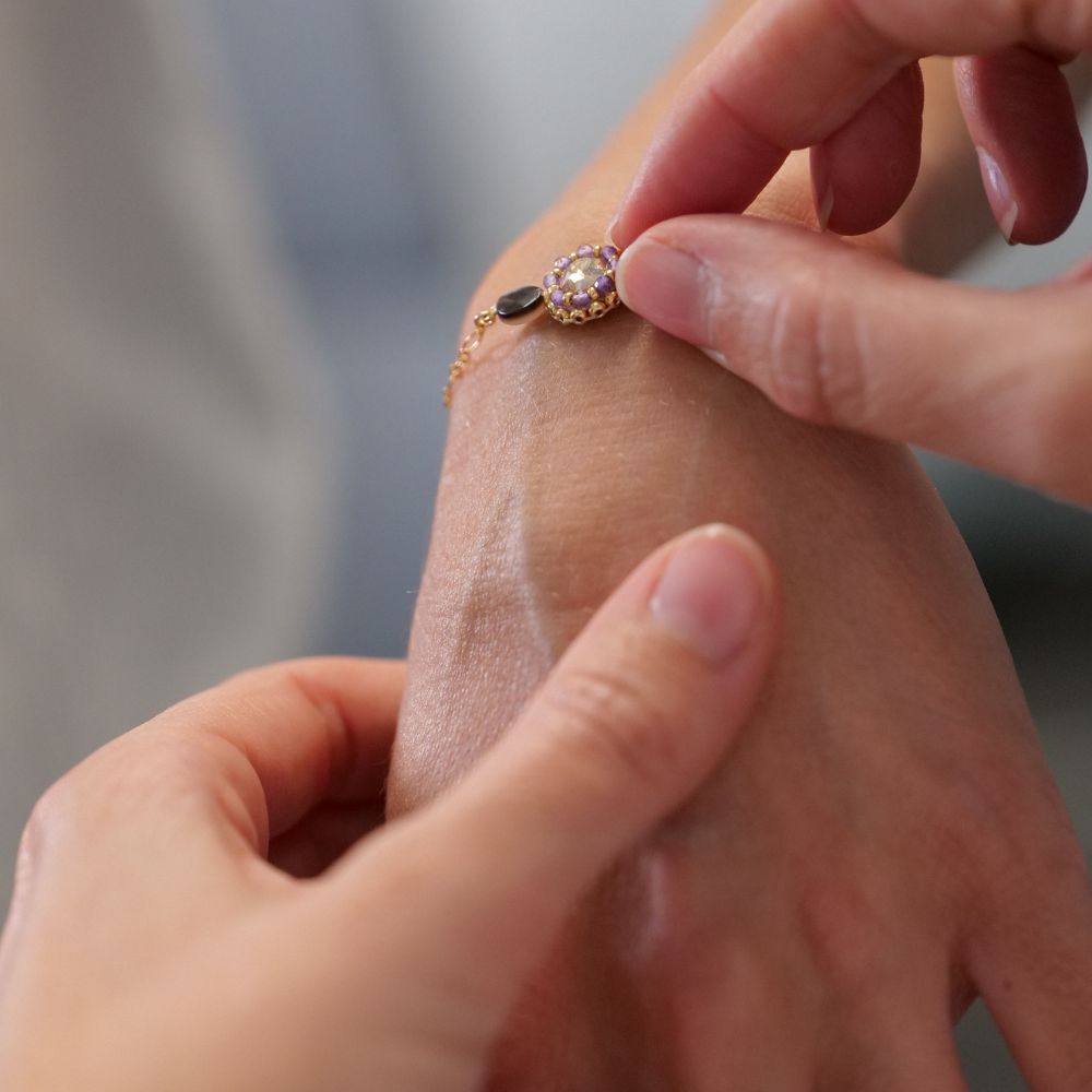 Quand je vois une pierre que j’ai choisie il y a des mois briller doucement à l’oreille d’une modèle… Quand une lumière vient se poser sur une courbe que j’ai brodée à la main, patiemment, perle après perle… Je me dis que tout ce travail silencieux, solitaire parfois, a pris tout son sens.